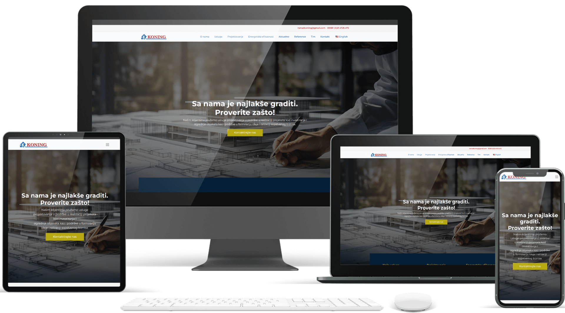 Sa balansom estetike, upotrebljivosti i tehničkih performansi, novi veb-sajt kompanije Koning d.o.o. jača njihovo onlajn prisustvo, povećava kredibilitet brenda i pruža modernu platformu koja efikasno predstavlja njihovu stručnost u industriji.